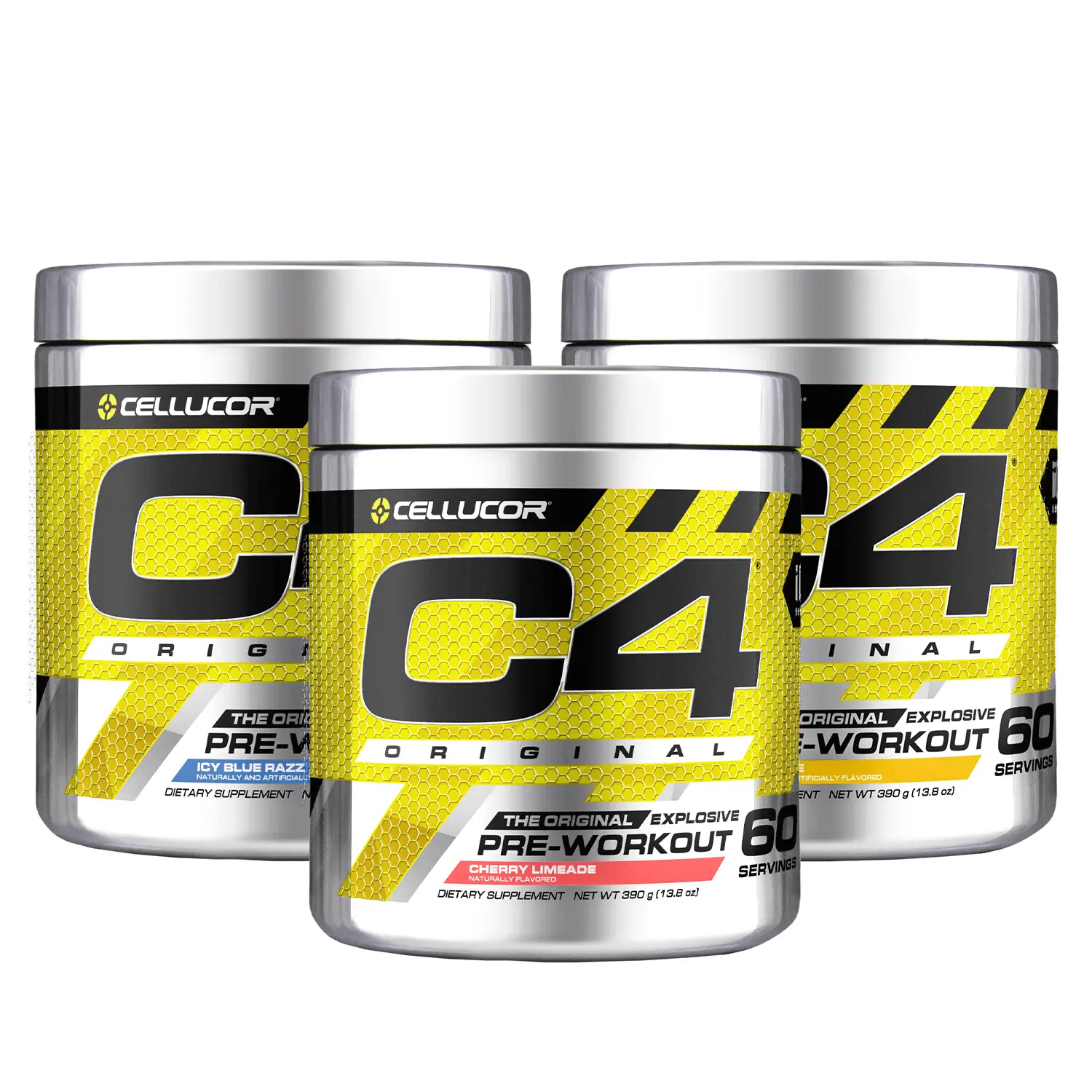 C4 60 servings About this itemC4 PRE WORKOUT POWDER FOR MEN & WOMEN – America’s Number 1 Selling Pre-Workout Brand has been trusted since 2011 with over 2 billion servings sold* For advanced energy support, endurance, force, and pumpsBUILD MUSCLE & STRENGTH – Formulated with a super creatine compound to support strength and performance. Whether you’re just starting your fitness journey or you’re striving for a new goal, C4 will help unlock your full potentialINCREASE REP COUNT – C4 pre workout for women and men is formulated with CarnoSyn Beta-Alanine, a premium clinically studied beta-alanine, which has been studied to support muscular endurance and fight fatigue and may cause a harmless tingling sensationMORE CAFFEINE, PLEASE – Formulated with a patented and clinically studied compound that may help the body prolong its caffeine tolerance buildup. Take 1 serving of sugar free pre workout mixed with 6 fl. oz of water 20-30 minutes before trainingDELICIOUS FLAVORS UNLIKE ANYTHING ON THE MARKET – Cherry Limeade, Fruit Punch, Icy Blue Razz, Orange Burst, Strawberry Margarita, Juicy Candy Burst, Watermelon, and Pink Lemonade